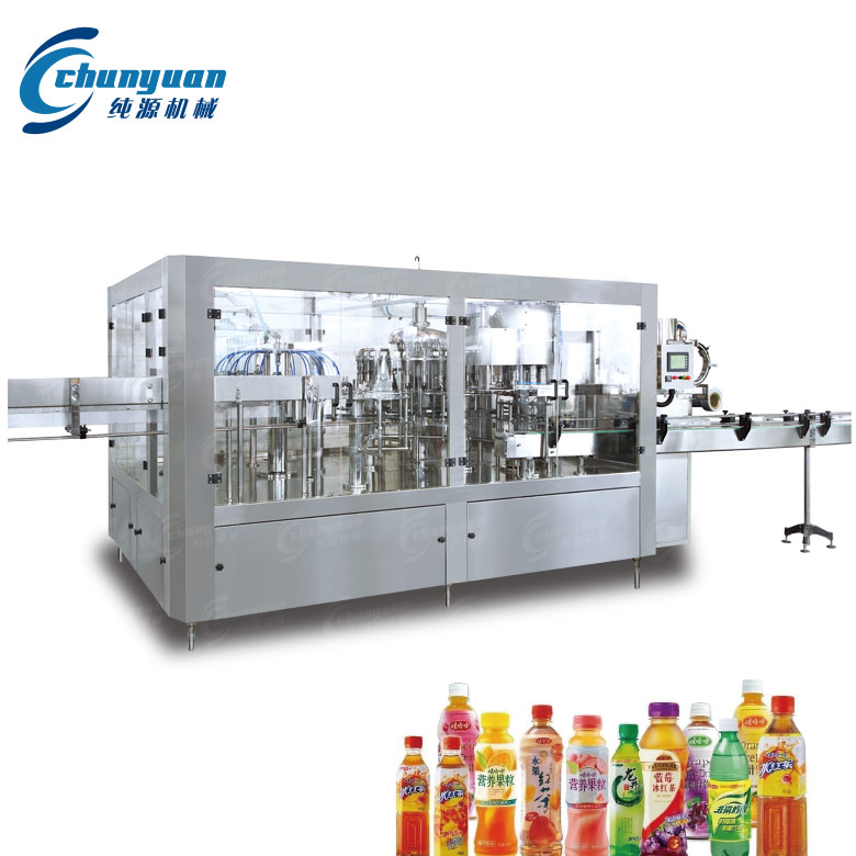 純源機械廠家供應(yīng)的全自動冰紅茶飲料灌裝機械采用卡瓶頸傳動技術(shù),實現(xiàn)全自動沖瓶、灌裝、旋蓋等工序,自動化程度高;配有完善的溫度控制系統(tǒng)和回流系統(tǒng),設(shè)有完善的自動清洗系統(tǒng)及控制程序,整個飲料機械與液體接觸的零件全部使用優(yōu)質(zhì)不銹鋼材料及食品級橡膠。