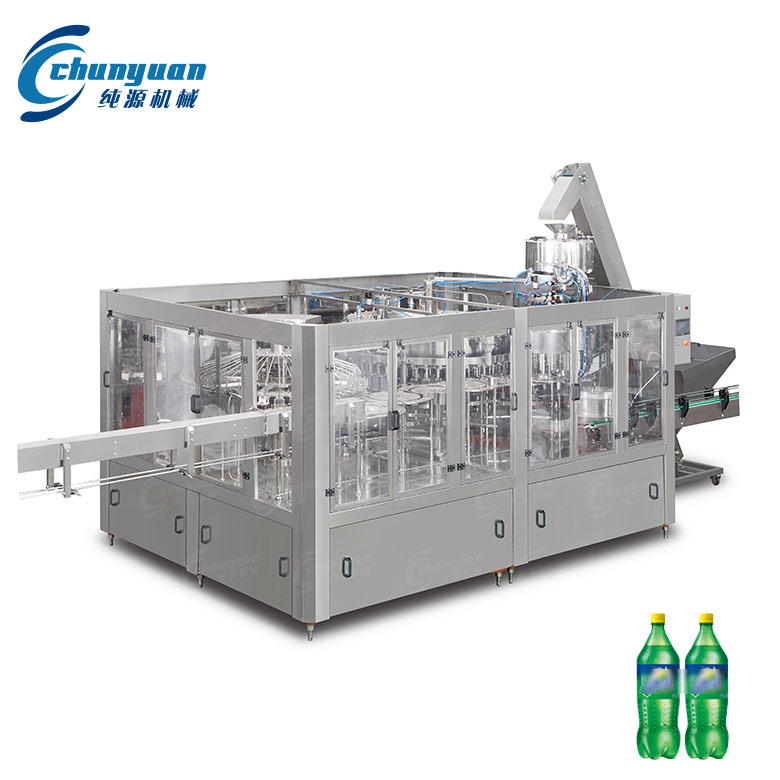 純?cè)礄C(jī)械廠家供應(yīng)的雪碧含汽飲料機(jī)械集沖洗、灌裝、旋蓋于一體,適用于灌裝雪碧、可樂(lè)、碳酸飲料、含汽蘇打水等含汽飲料的聚酯瓶灌裝,全過(guò)程實(shí)現(xiàn)自動(dòng)化。